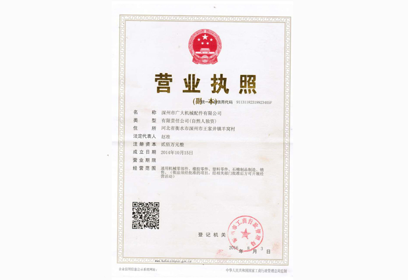 深州市廣大機(jī)械配件有限公司始建于2000年,是專業(yè)生產(chǎn)橡膠、塑料用品、沖壓件的民營(yíng)企業(yè)。我公司地處古城深州,石德鐵路、京九鐵路、石黃高速、大廣高速在此交匯,交通十分便利,地理優(yōu)勢(shì)優(yōu)越。工廠占地面積3000平米,建筑面積1500平米,現(xiàn)有職工50名,專業(yè)技術(shù)人員5名,固定資產(chǎn)1200萬(wàn)... 詳細(xì)>>